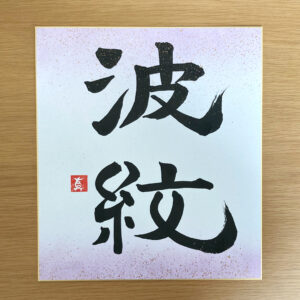 墨が乾くと、繊細なラメが美しく浮き上がり、「波紋」の力強い表現と、背景の幻想的なきらめきが絶妙な調和を生み出しました。