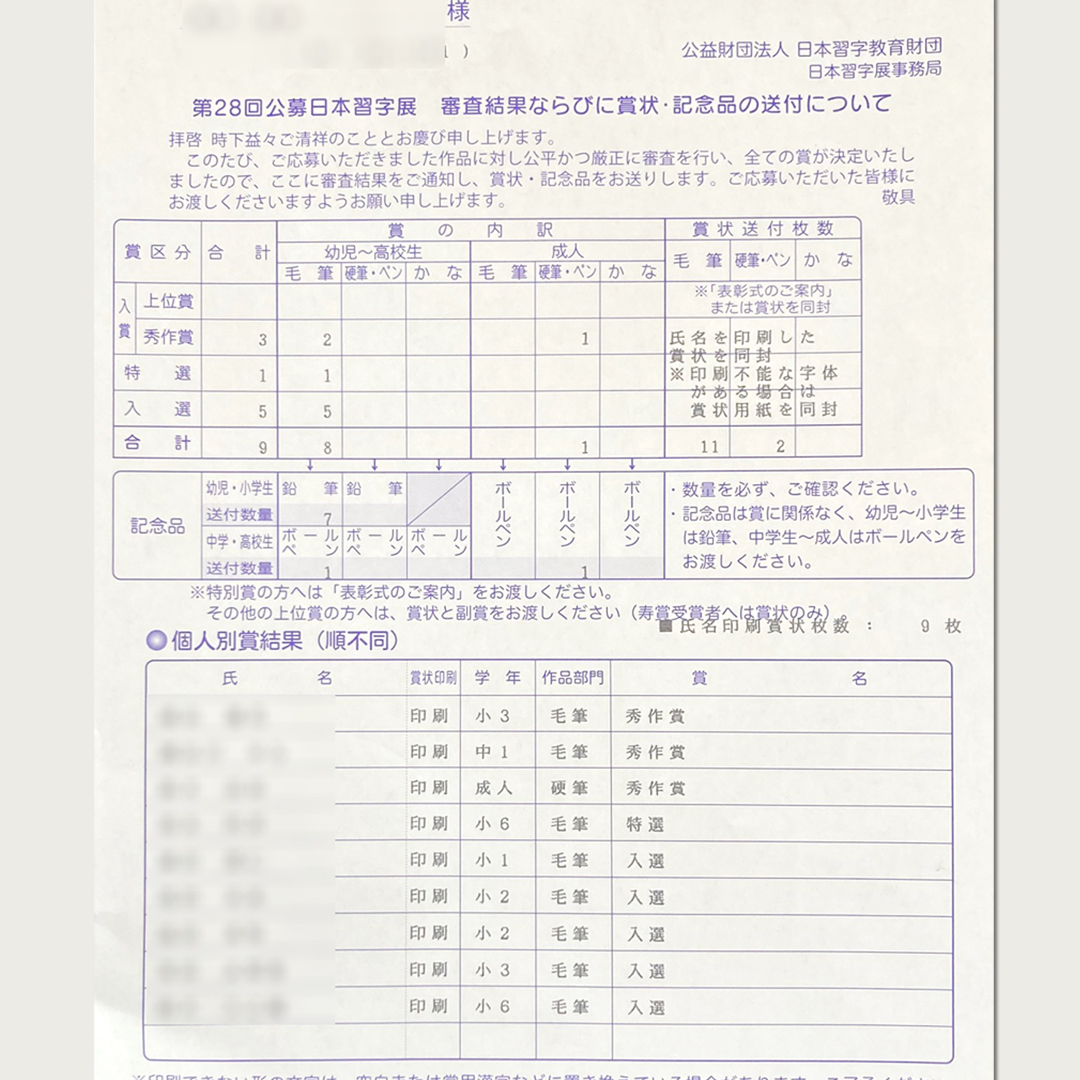 展覧会は、ただ賞を取るためのものではなく、一人ひとりが自分の字と向き合い、一枚を仕上げる経験そのものに意味があると考えています。