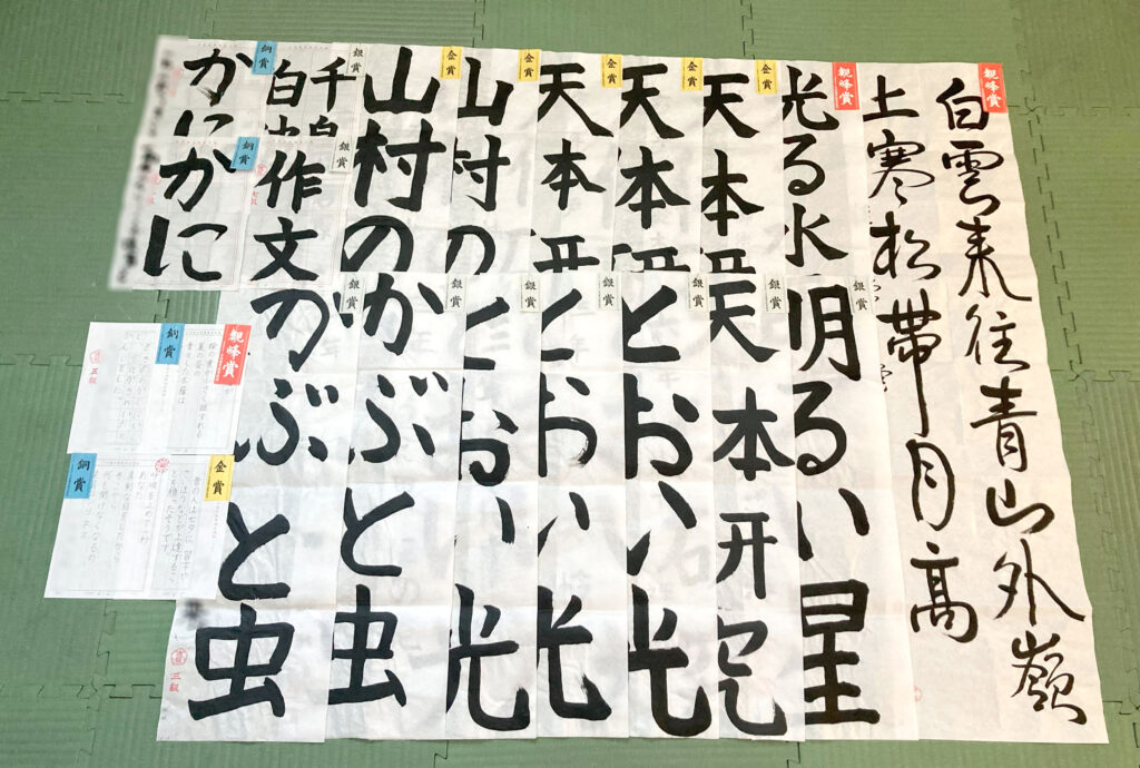 生徒さんの書&gallery 2022.02.022025.08.24 毛筆 全国競書大会 お教室Gallery 硬筆 毛筆 課題 小学4年生 3級 お稽古歴11ケ月 小学3年生 10級 お稽古歴3ケ月 小学2年生 6級 お稽古歴1年2ケ月 小学3年生 5級 お稽古歴4ケ月 小学3年生 8級 お稽古歴6ケ月 小学2年生 5級 お稽古歴1年10ケ月 小学校3年生 7級 お稽古歴8ケ月 小学3年生 5級 お稽古歴11ケ月 小学3年生 10級 お稽古歴5ケ月 小学4年生 6級 お稽古歴1年2ケ月 小学4年生 4級 お稽古歴1年4ケ月 全国競書大会 2024年7月「たなばた競書大会」の課題を書いています。床で書く経験も大切! 2024年12月「全国かきぞめ競書大会」の課題にチャレンジです!入会後初めての生徒さんは通常半紙で出品します。 2025年7月「たなばた競書大会」見事全員昇級昇段です 2025年7月「たなばた競書大会」みんな真剣に取り組んでいます お教室Gallery 2022年寅年の年賀状のワークショップです 2023年卯年のカレンダー作成のワークショップです 学校の冬休みの宿題! ワークショップ(カレンダー作り) ワークショップ(うちわ作り) 小学校の書き初めにて金賞(学年で1名のみ)受賞! 狛江市「税の書道展」努力賞! 狛江市「税の書道展」努力賞! 2024年夏のワークショップ うちわ作り 2024年度冬休みの宿題「書き初め」 ワークショップ*2025年巳年カレンダー作成 ワークショップ*2025年巳年カレンダー作成 合唱コンクールの曲名揮毫をお教室でサポートしましたお手本なしでこの出来栄え!! 硬筆 課題 3年生男の子 7級 2年生男の子 左利き 4年生男の子 新規 4年生男の子 3級 字の大きさも揃い、中心も通ってきました。字形も整ってきています。 次のページへ 先生プロフィール(経歴・受賞歴、書道との出会いから教室を開くまで)